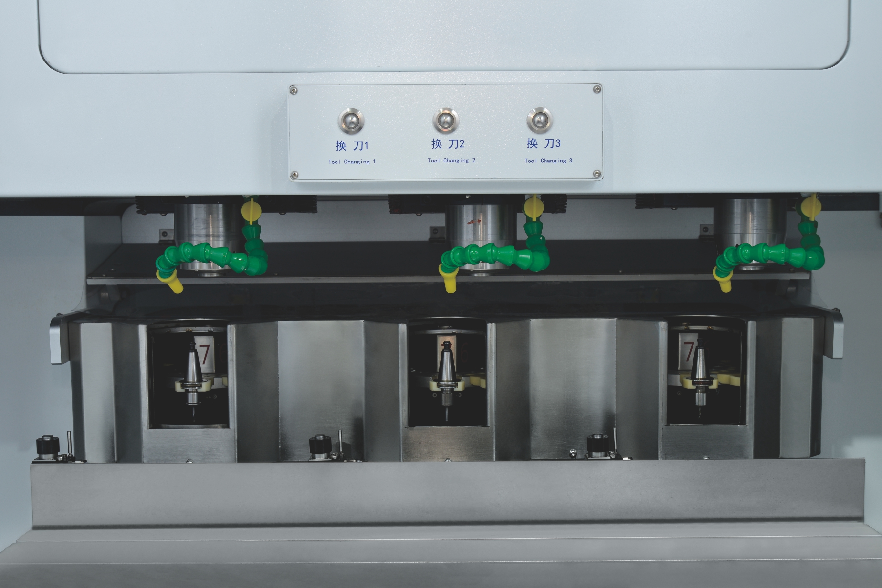 3.首創(chuàng)三軸刀庫精雕機(jī),每個主軸備多把刀具,滿足更多工藝要求;實(shí)現(xiàn)產(chǎn)品一次裝夾加工成型.