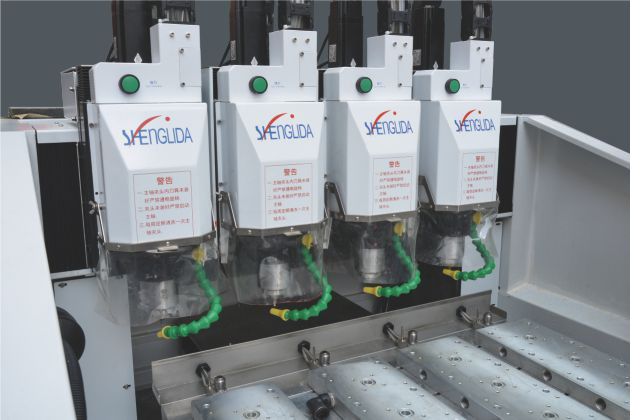 2. 機(jī)床配置四支切削主軸, 四工位工作臺(tái)+緊湊4Z軸,一次加工四件產(chǎn)品 ,加工效率高.